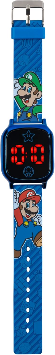 Accutime Kids Nintendo Super Mario Digital Flashing LCD Quartz Childrens Wrist Watch for Boys, Girls, Toddlers with Blue Multicolor Strap . This Super Mario digital kids watch is the perfect accessory for your little one for both work and play! With an easy to reach LCD digital display and LED Flash light – a cool, fun Animal Crossing design featuring their favorite characters, this is a wristwatch that boys and girls of 3+ years old can enjoy.